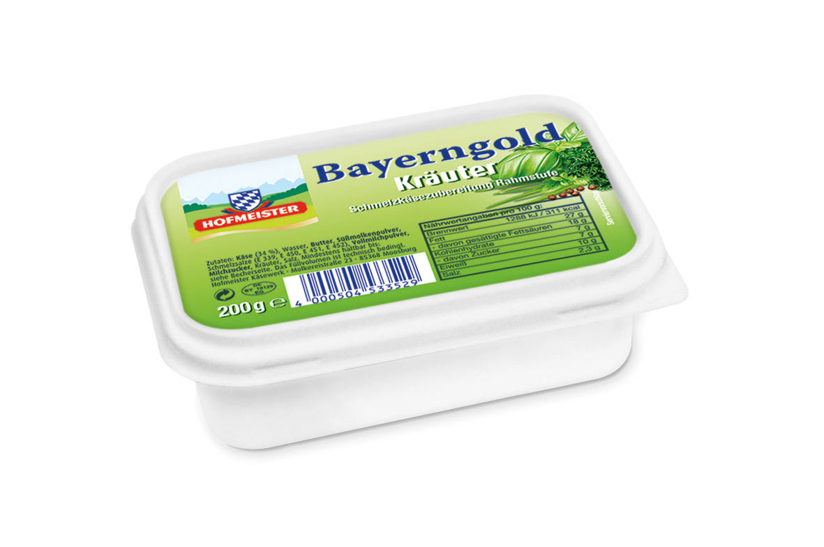 Produkt: HOFMEISTER Bayerngold Schmelzkäsezubereitung Kräuter, 55 % Fett i.Tr., 200 g